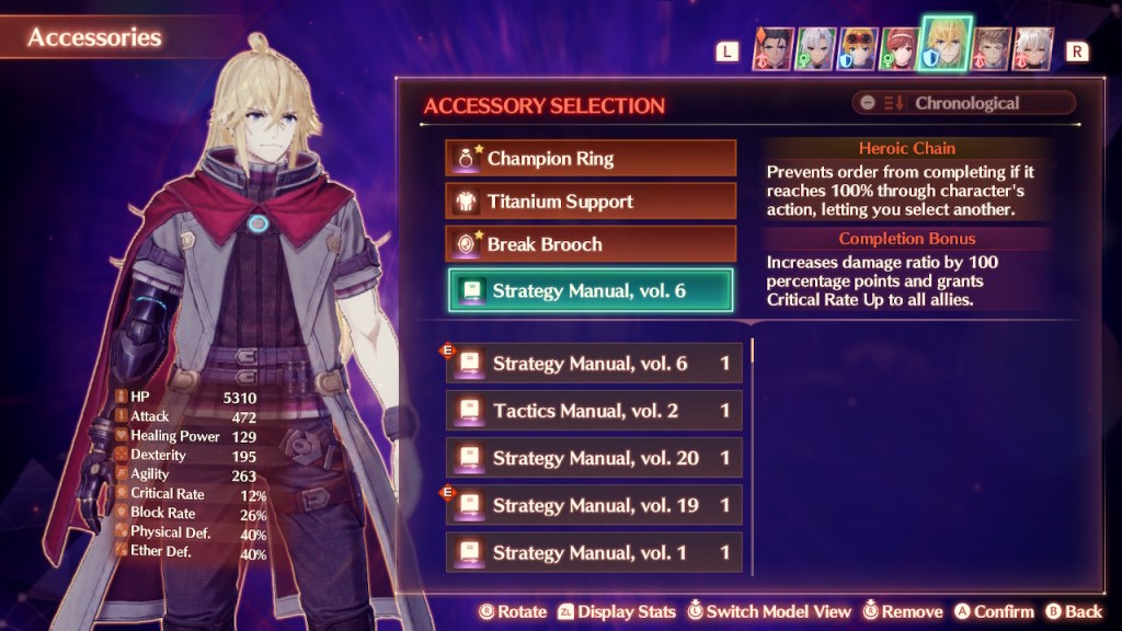 Thankfully, all is not lost for those who enjoy the customization of Xenoblade combat. Manuals are one of FR’s best additions, allowing you to choose your own Heroic Chain or completion bonus with accessories. They give Chain Attacks gain a whole new dimension of strategy and customization. Which helps, since you still can’t speed up or skip Chain Attack animations, and the music for them is the same. Monolith Soft must be very proud of the Chain Attack animations, because they really want you to watch them every single damn time. At least the attack animation for the completion of a Unity Order is quicker than the Ouroboros Order finisher this time around.